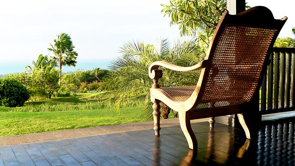 De veranda van Villa Bali Breeze Lovina: vrij spel voor de koele zeebries. En schitterende uitzichten over tuin en rijstvelden
